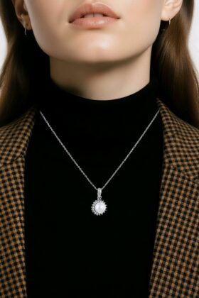 Λευκόχρυσο κολιέ μαργαριτάρι 14 καράτια με λευκά ζιργκόν K14.5136