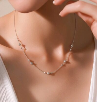 Λευκόρυσο κολιέ 14Κ με ανάγλυφες μπίλιες K14.528