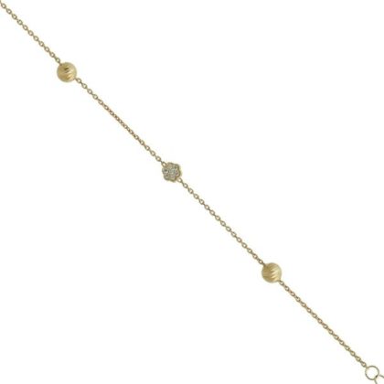 Βραχιόλι χρυσό 14 καράτια με ανάγλυφες μπίλιες και λευκά ζιργκόν Κ14.21055