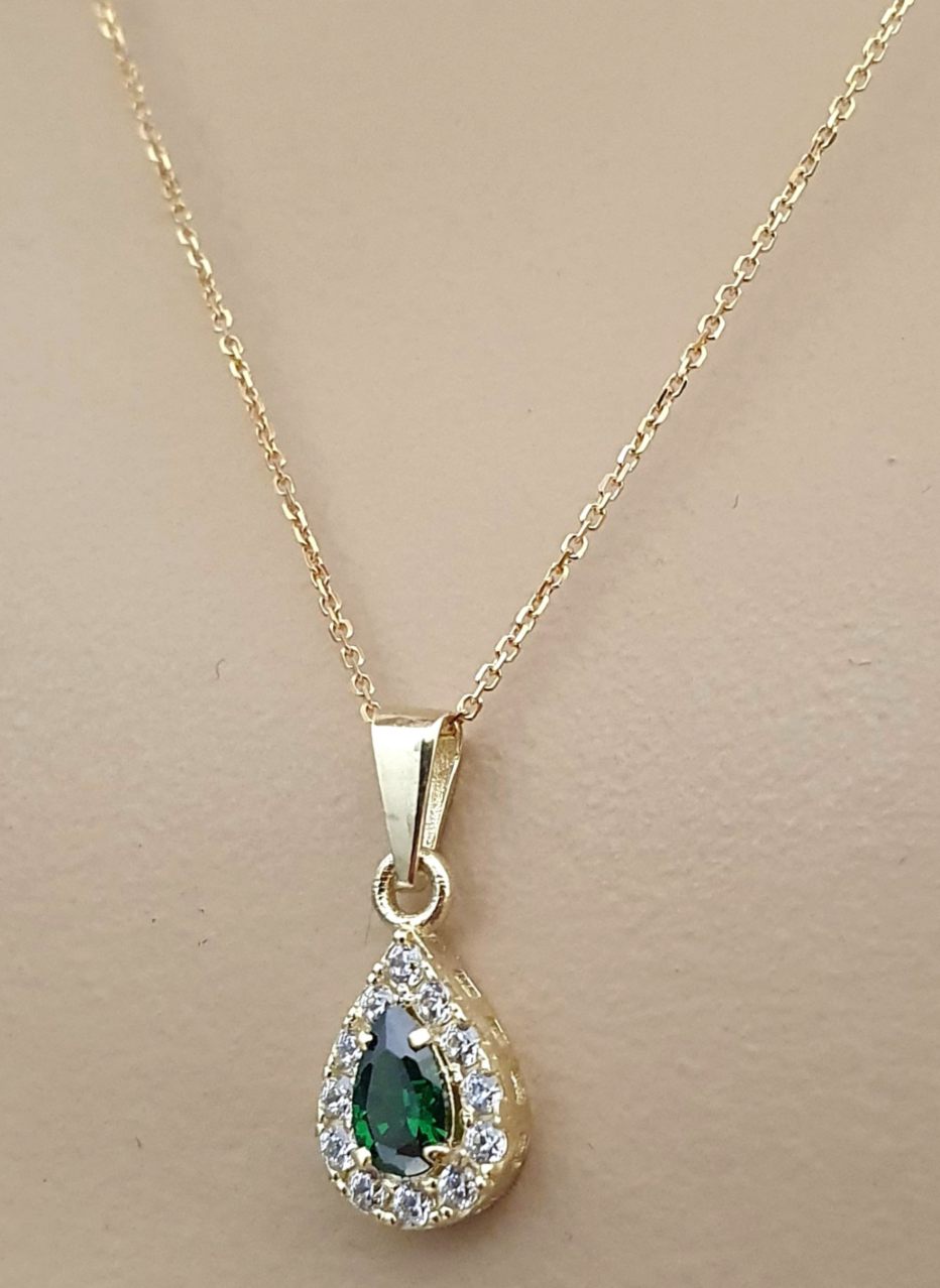 Χρυσό κολιέ δάκρυ 14 καράτια K14.8817 / Χρυσό κολιέ 14 καράτιων με αλυσίδα, στολισμένο από λαμπερά ζιργκόν K14.8817