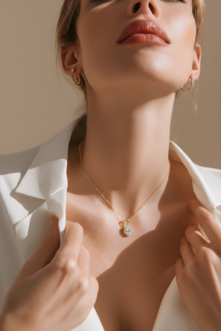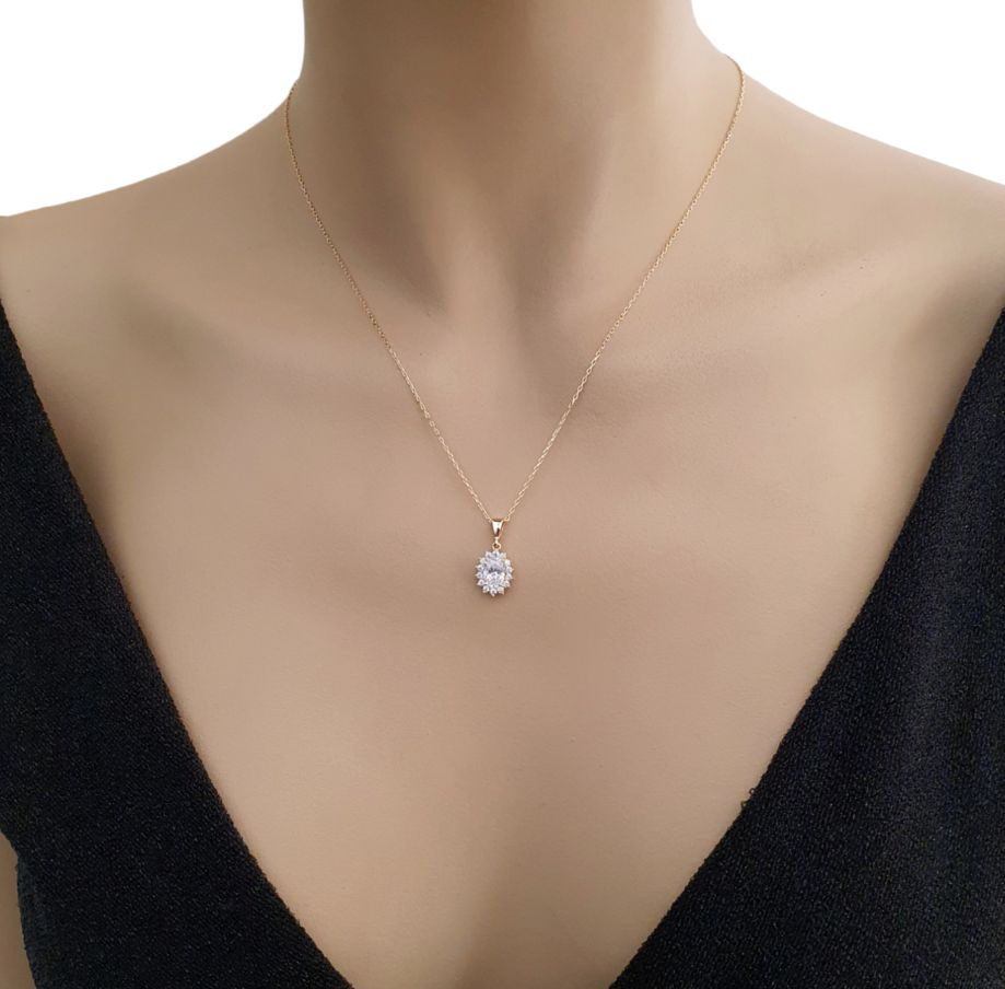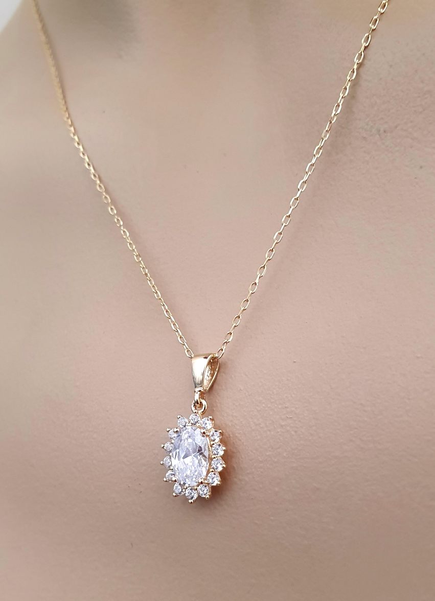 Χρυσό κολιέ ροζέτα 9 καράτια K9.92355 / Εξαιρετικό Χρυσό κολιέ ροζέτα από χρυσό 9 καρατίων στολισμένο με λευκά λαμπερά ζιργκόν, ιδανικό για επίσημες εμφανίσεις / K9.92355
