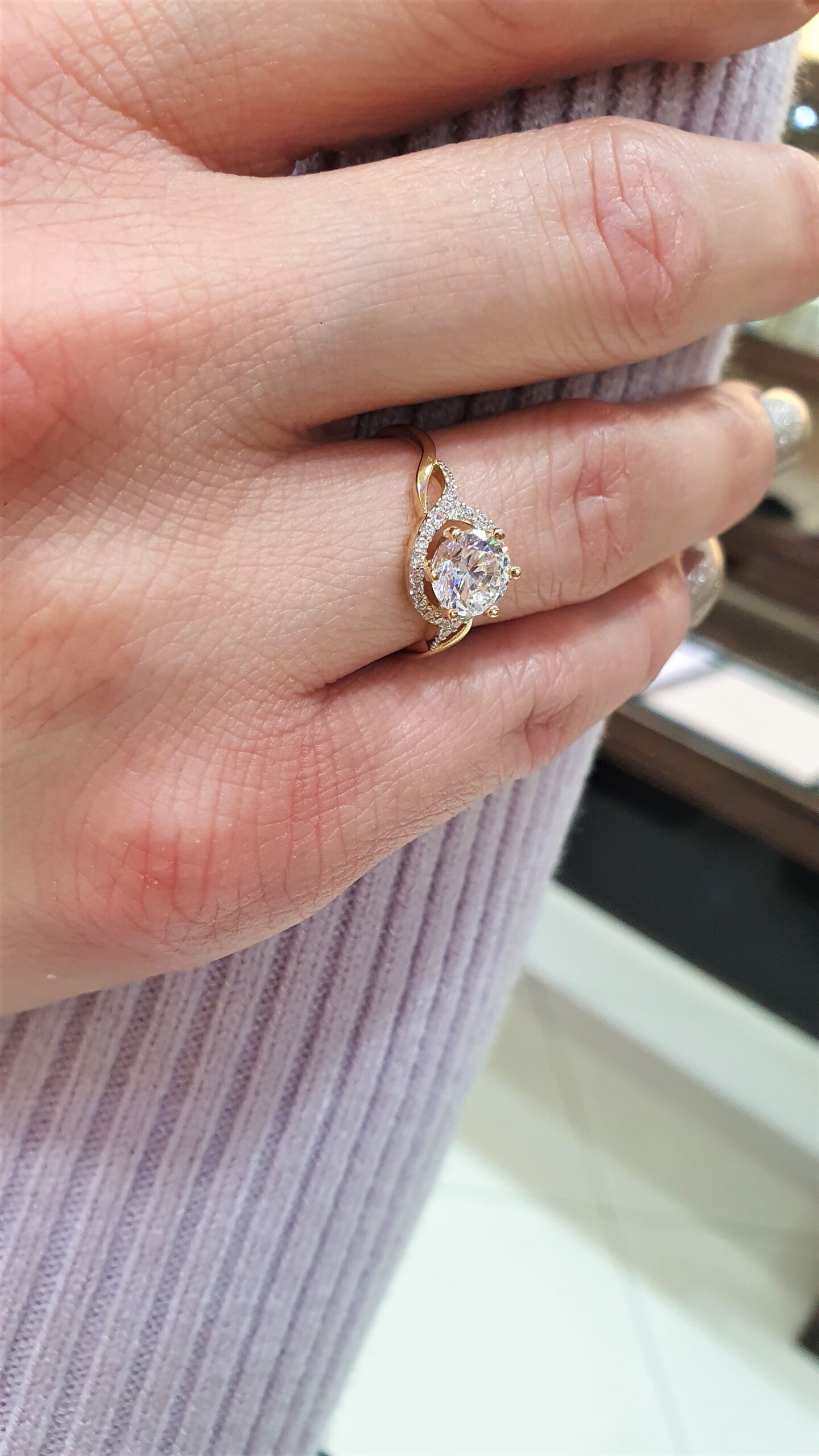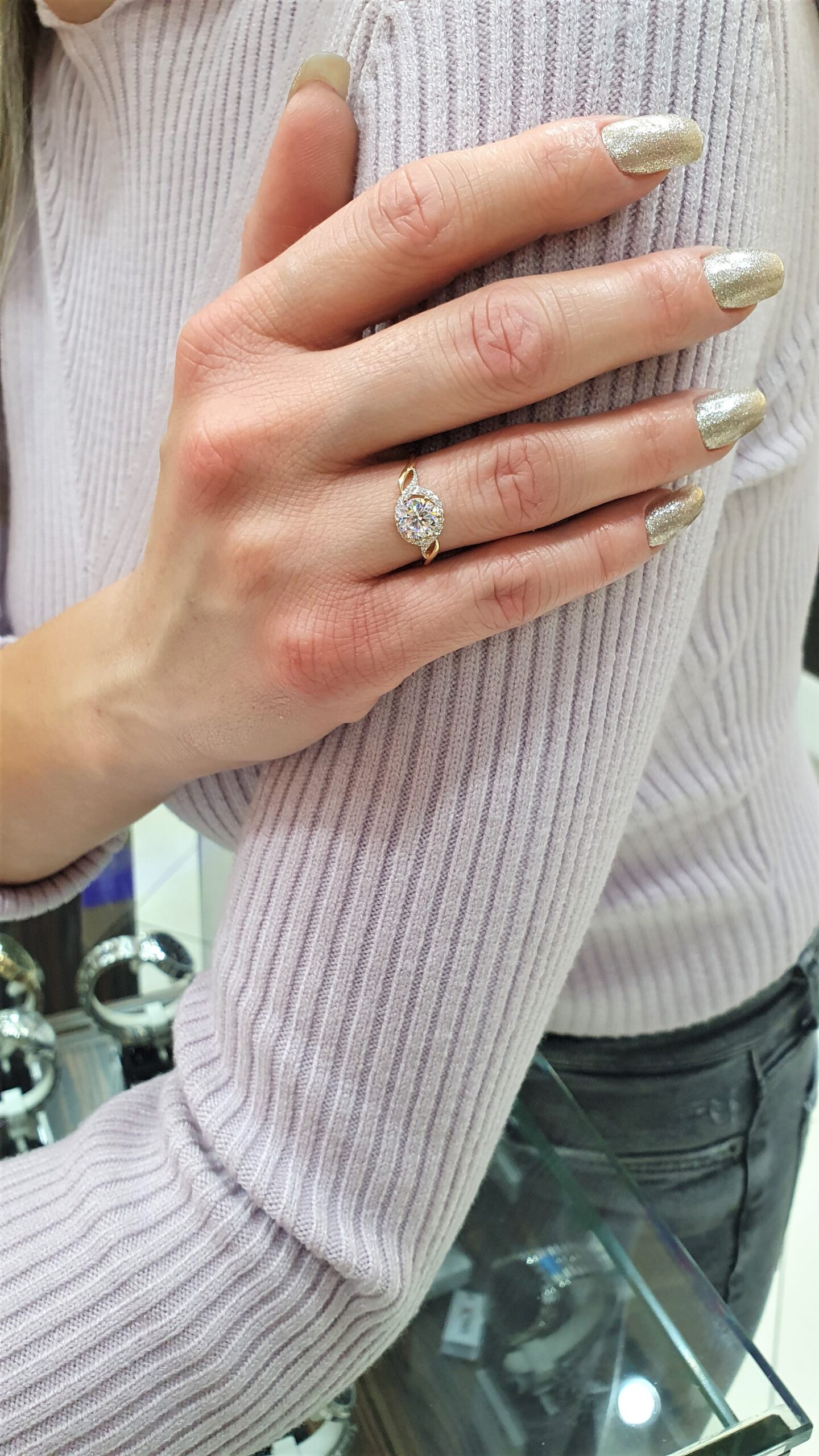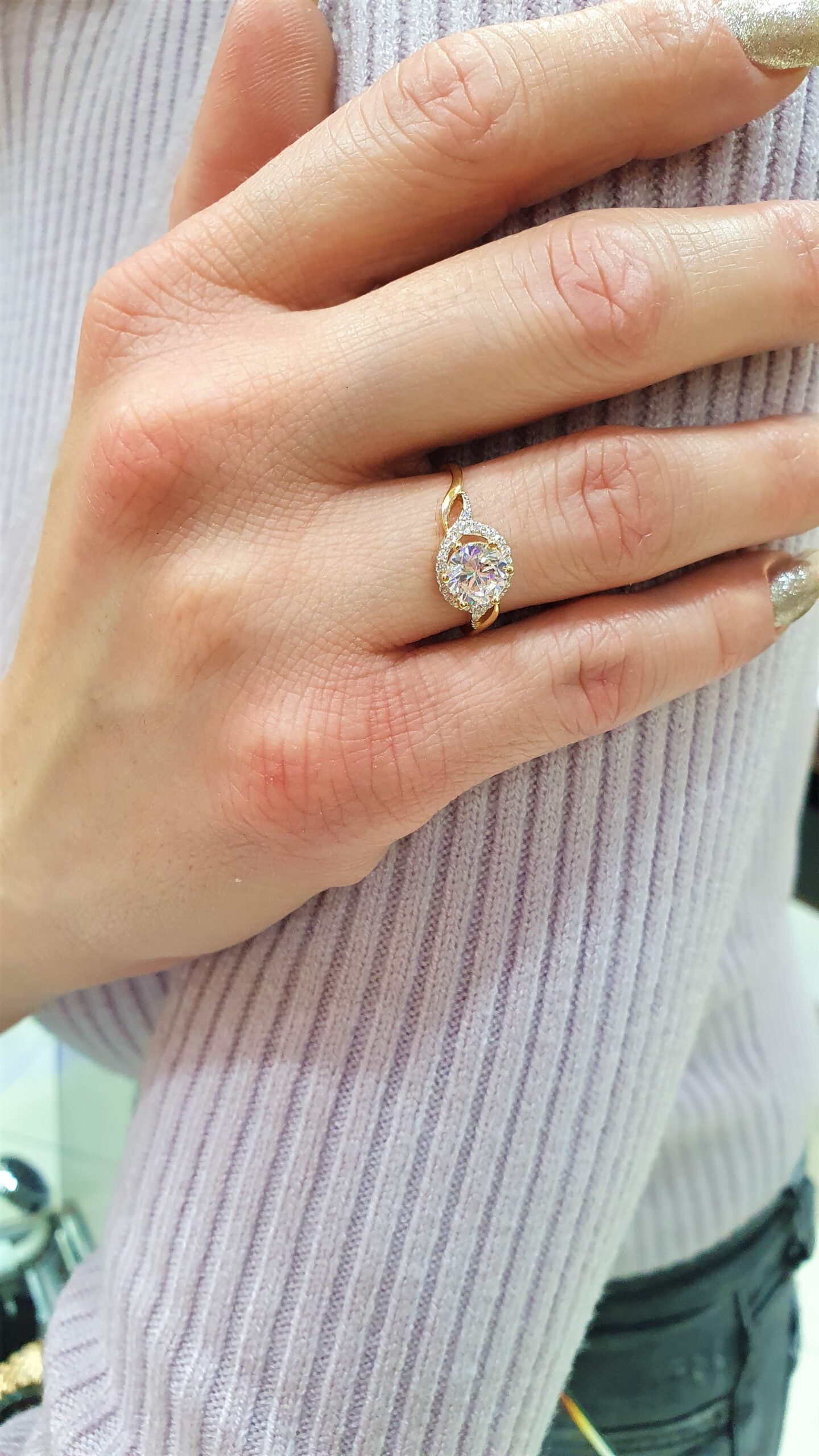 Γυναικείο δαχτυλίδι μονόπετρο από χρυσό 14 καρατίων, για κομψές επίσημες εμφανίσεις στολισμένο με λευκά ζιργκόν / Κ14.9180