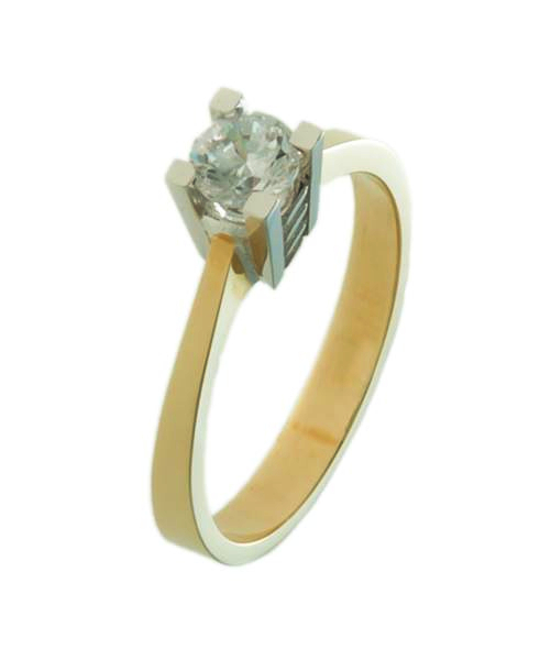 Γυναικείο δαχτυλίδι μονόπετρο από δίχρωμο χρυσό 14 καρατίων, για κομψές επίσημες εμφανίσεις στολισμένο με λευκό ζιργκόν / Κ14.9135