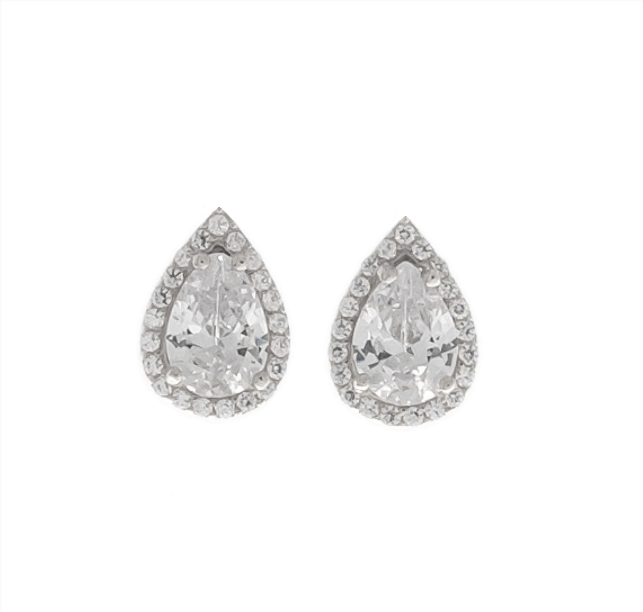 Κομψά σκουλαρίκια δάκρυ από λευκόχρυσο 14 καρατίων σε λουστρέ φινίρισμα, στολισμένα με λευκά ζιργκόν / Κ14.8244