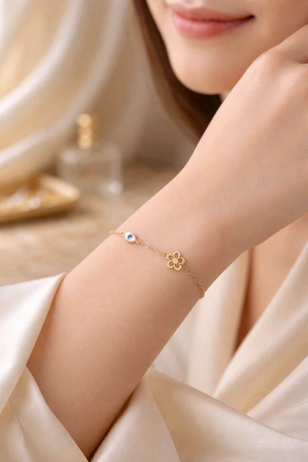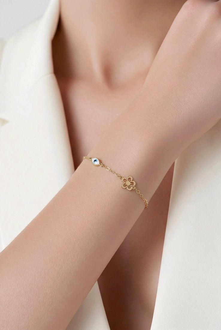 Παιδικό Βραχιόλι χρυσό Κ9.052 / Χρυσό βραχιόλι σε 9 καράτια , στολισμένο με λουλουδάκι και ματάκι εκπληκτικού σχεδιασμού για τα αγαπημένα σας πρόσωπα / Κ9.052