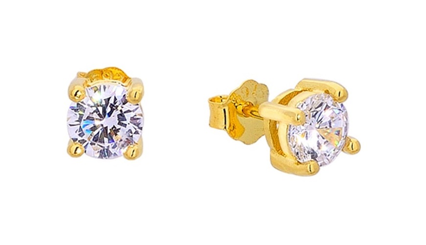Ασημένια επιχρυσωμένα σκουλαρίκια 925° μονόπετρο με λευκό λαμπερό κρύσταλλο / 1A-SC240-3