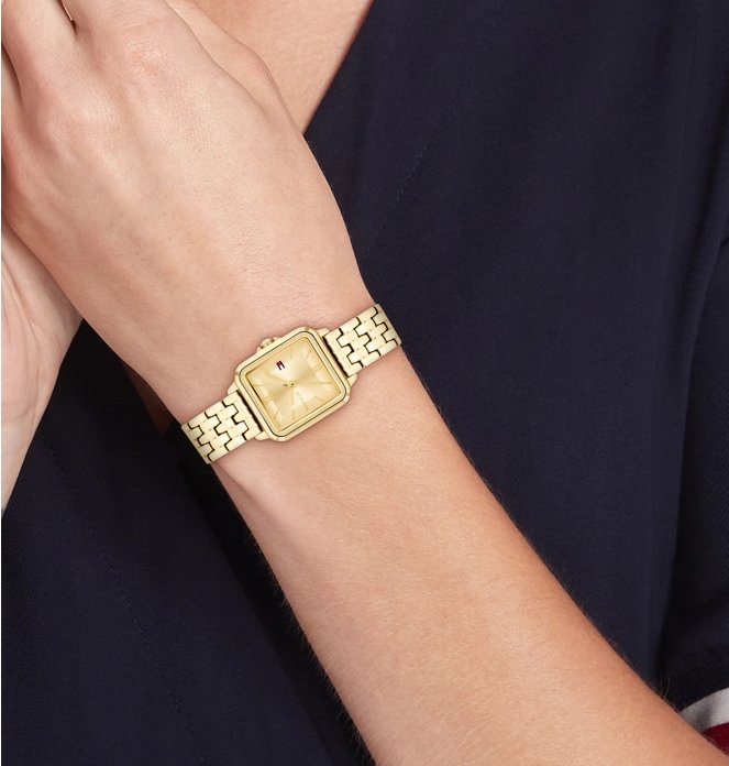 INTIMA 23k Golden watch Black Leather Strap IN102L