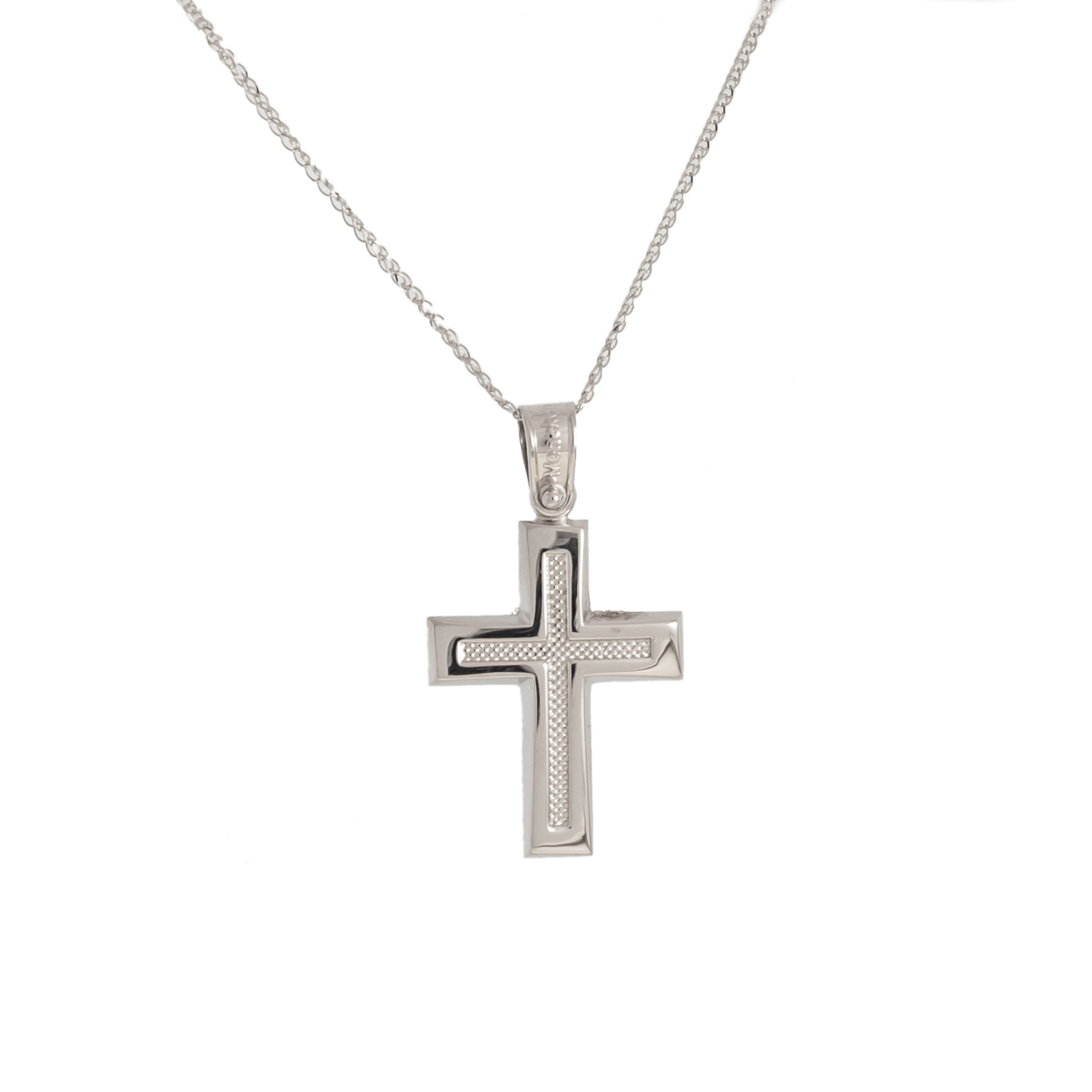 Λευκόχρυσος βαπτιστικός σταυρός 14 καρατίων.