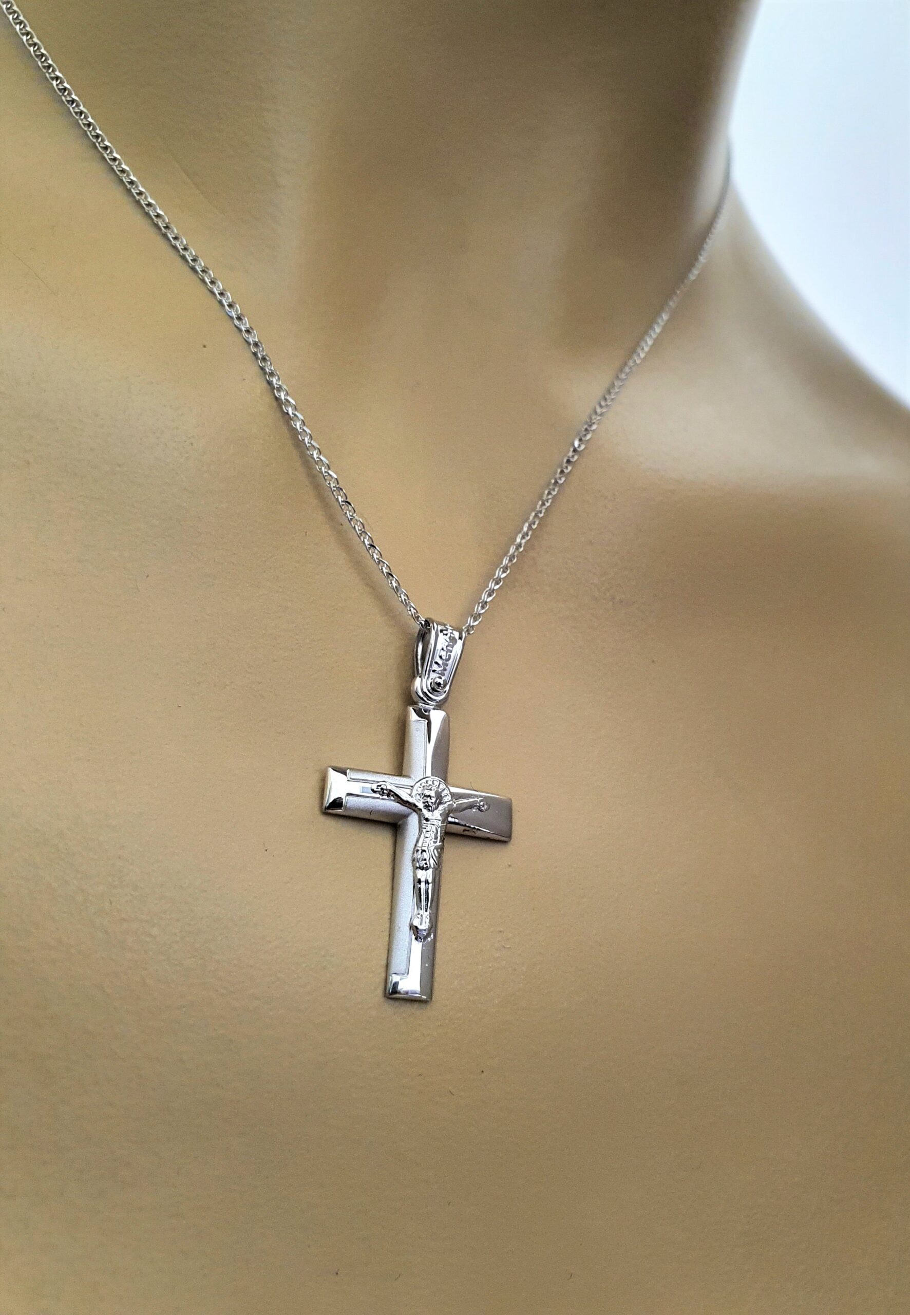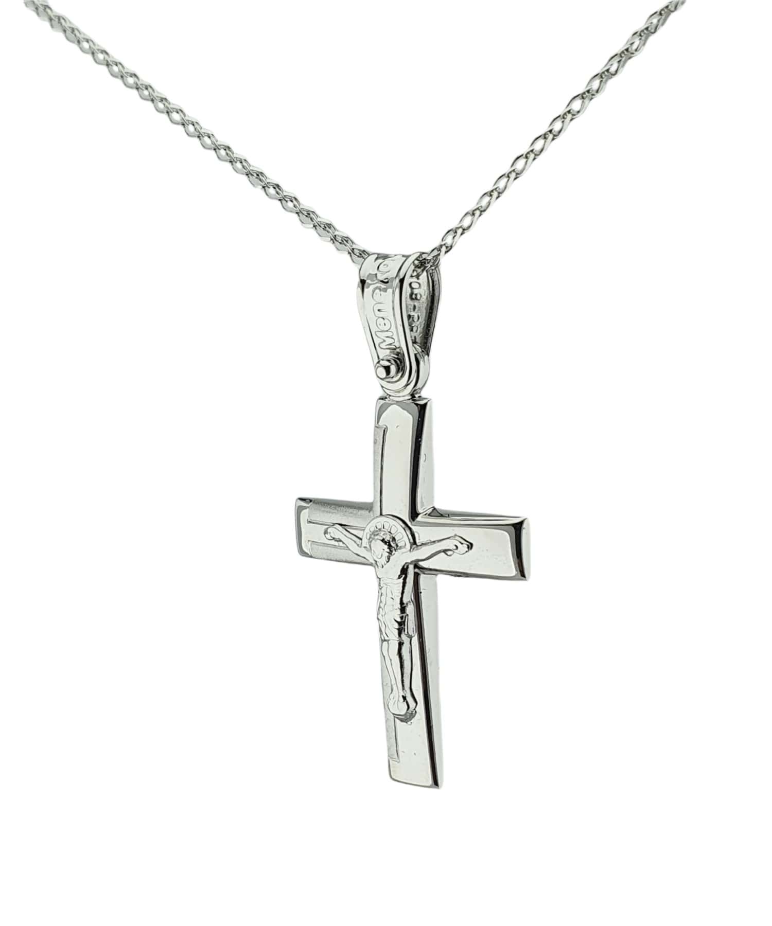 Λευκόχρυσος βαπτιστικός σταυρός 14 καρατίων.