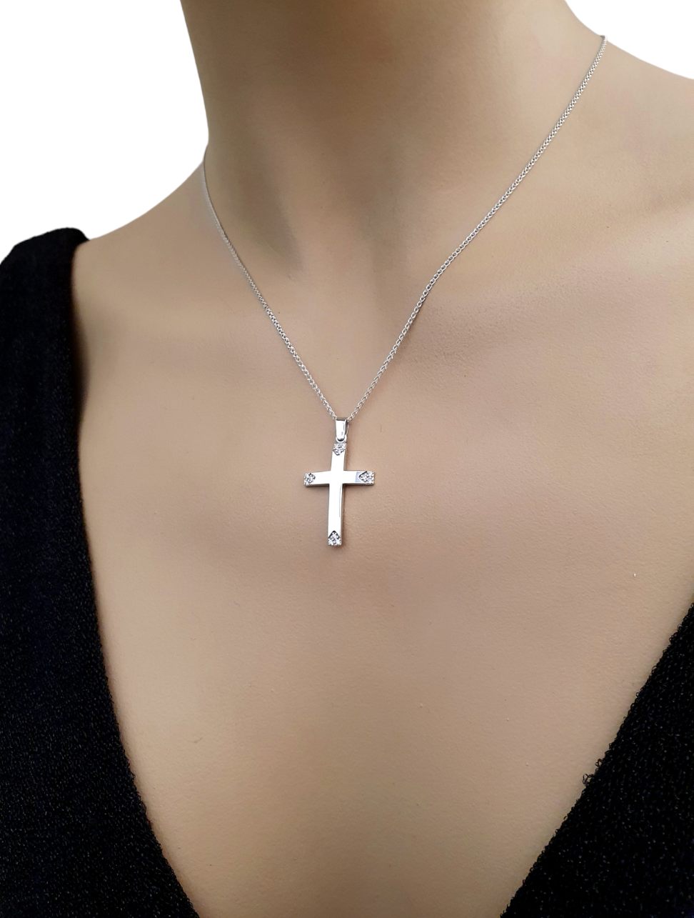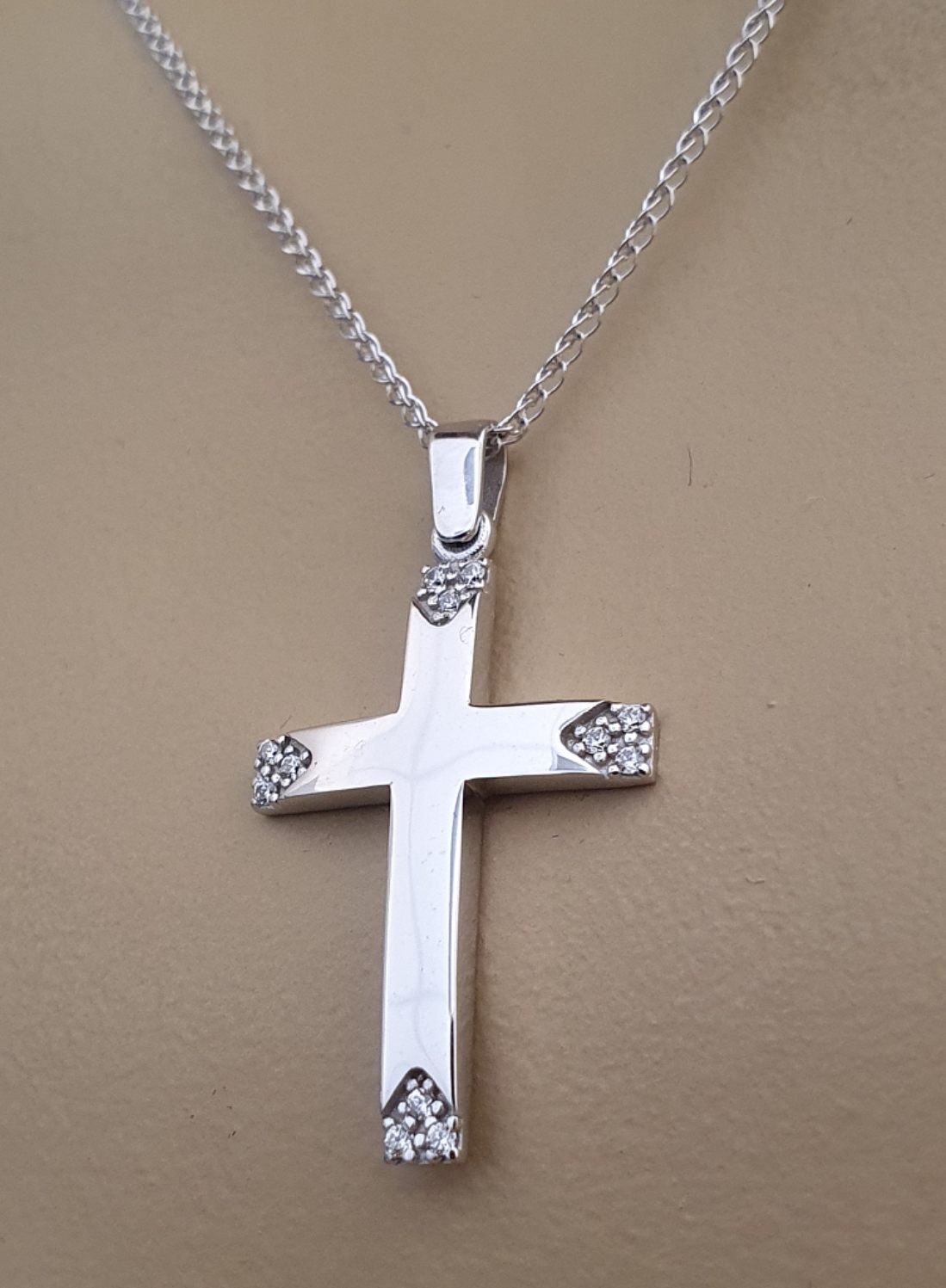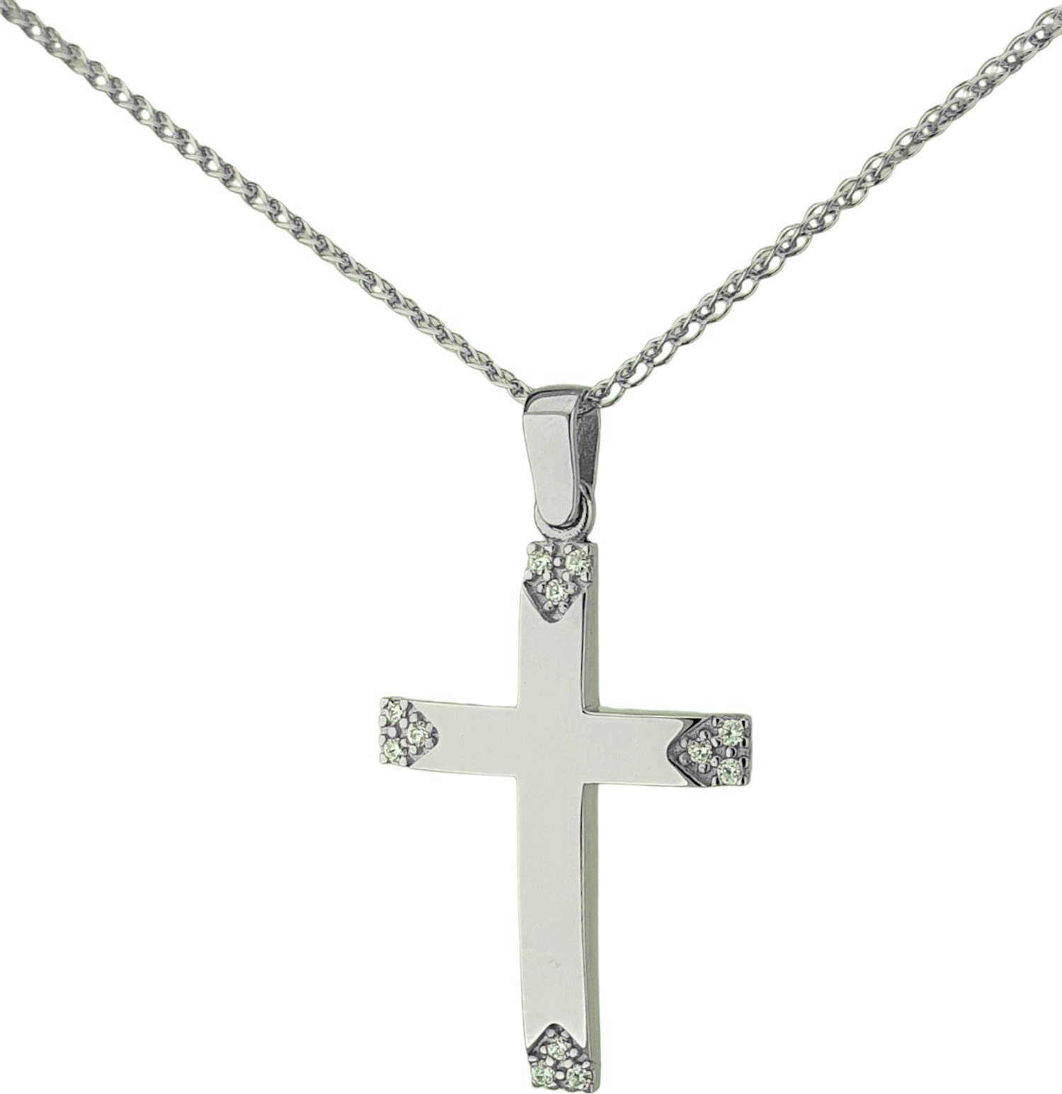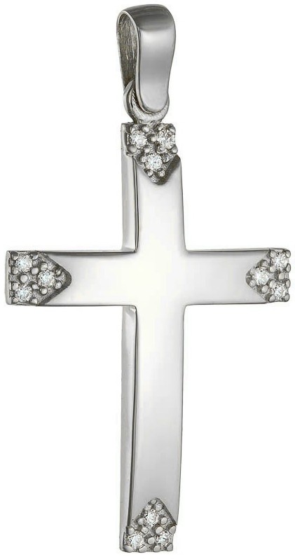 Λευκόχρυσος βαπτιστικός σταυρός 14 καρατίων με ζιργκόν, χωρίς αλυσίδα.