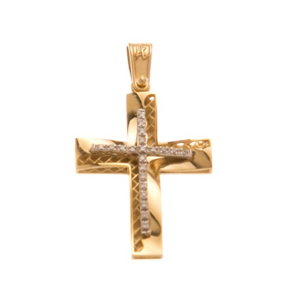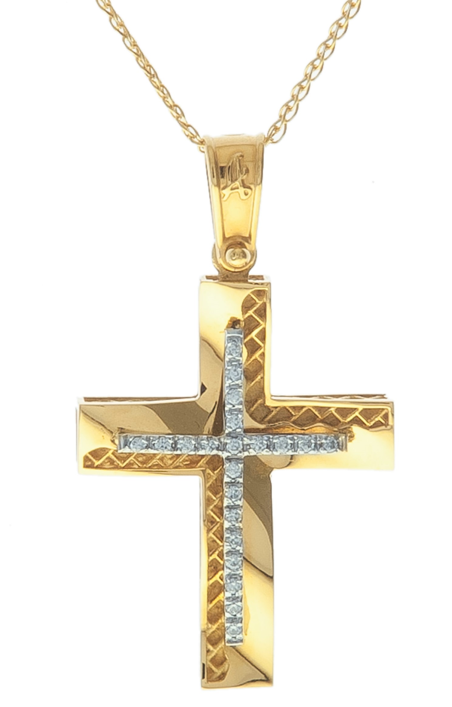 Χρυσός βαπτιστικός σταυρός 14 καρατίων με ζιργκόν.