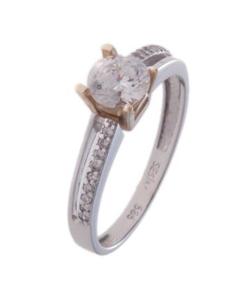 Δαχτυλίδι μονόπετρο δίχρωμο χρυσό 14 καράτια με ζιργκόν Κ14.9135